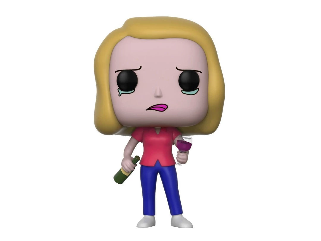 From Rick and Morty, Beth with Wine Glass, as a stylized POP vinyl from Funko! Figure stands 3 3/4 inches and comes in a window display box. Check out the other Rick and Morty figures from Funko! Collect them all!.